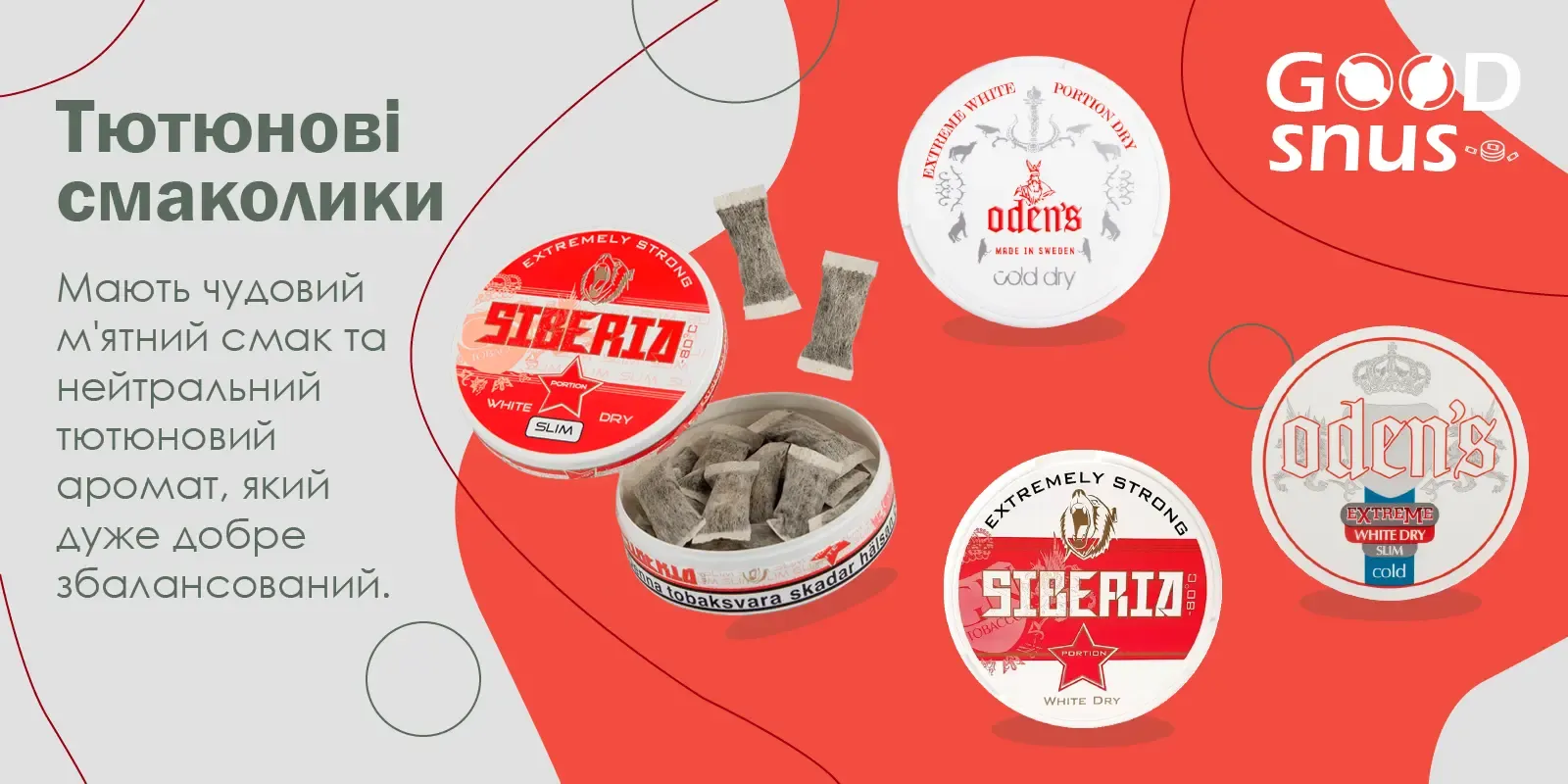 Набрид запах застарілого тютюну, ранковий кашель курця та необхідність виходити на перекур у будь-яку погоду на вулицю? При цьому відмовитися від нікотину – не варіант? Тоді спробуйте перейти на альтернативне бездимне куріння. Впевнені, ви одразу оціните всі його переваги. І в цьому допоможе Goodsnus – найбільший в Україні інтернет-магазин шведського снюсу На нашому сайті ви знайдете альтернативу звичайним сигаретам – снюси, електронні одноразові та багаторазові ПІД-системи та рідини для заправки електронок. З ними вам набагато комфортніше отримувати необхідну дозу нікотину, а ваш організм відразу відреагує на зміни поліпшенням стану здоров'я. Зацікавились? Розповідаємо все по порядку.